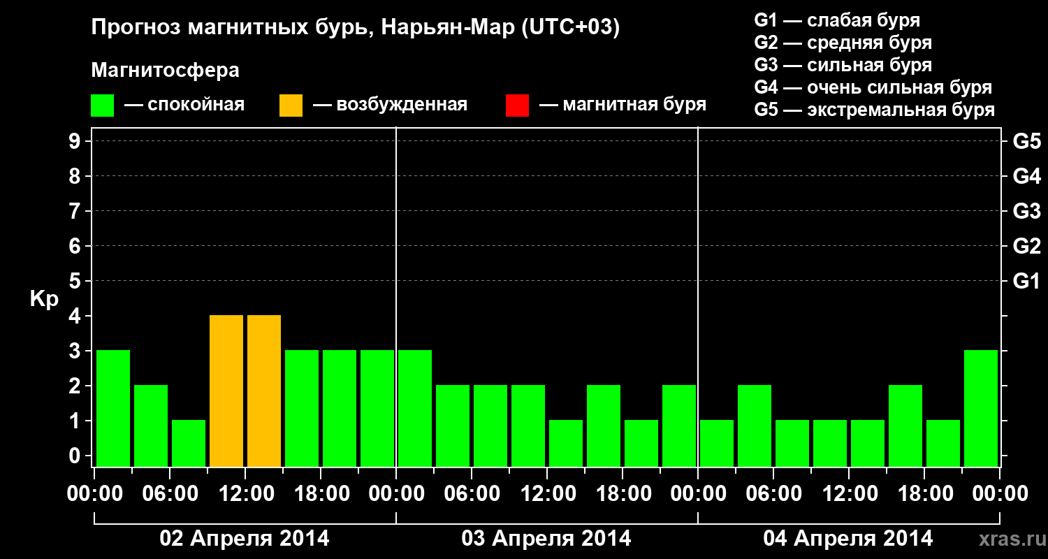 Прогноз магнитных бурь в Нарьян-Маре — 2 апреля 2014 года