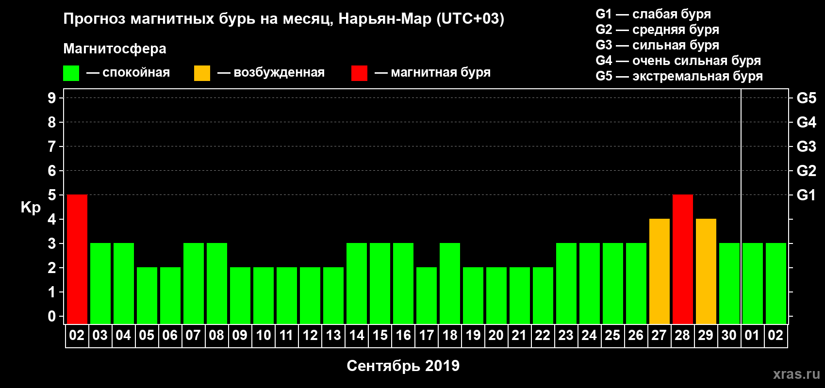 Прогноз магнитных бурь в Нарьян-Маре на 2 сентября 2019 года