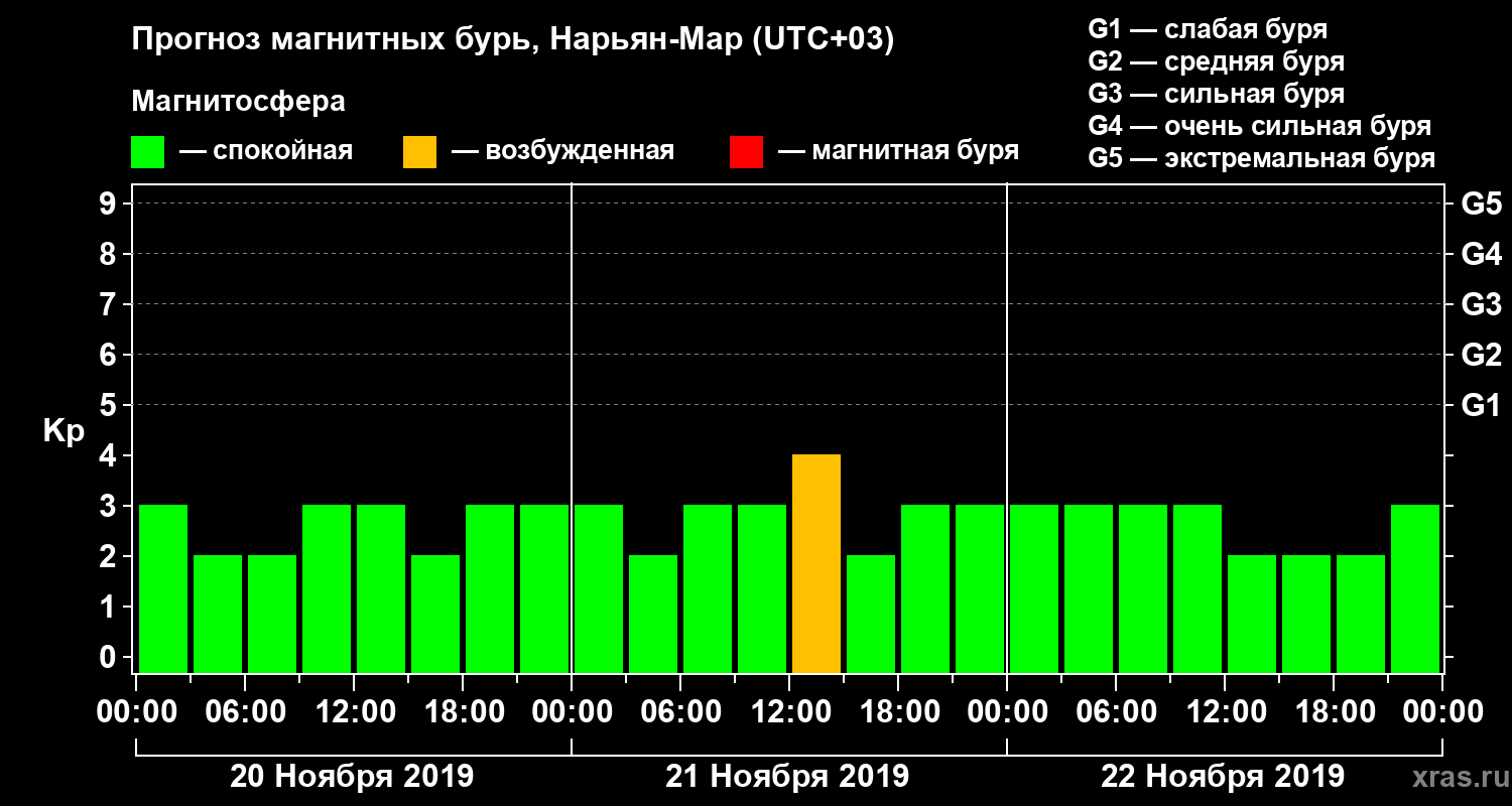 Прогноз магнитных бурь в Нарьян-Маре на 20 ноября 2019 года