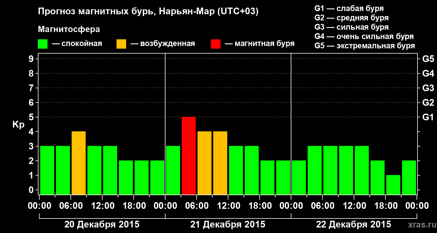 Прогноз магнитных бурь в Нарьян-Маре на 20 декабря 2015 года