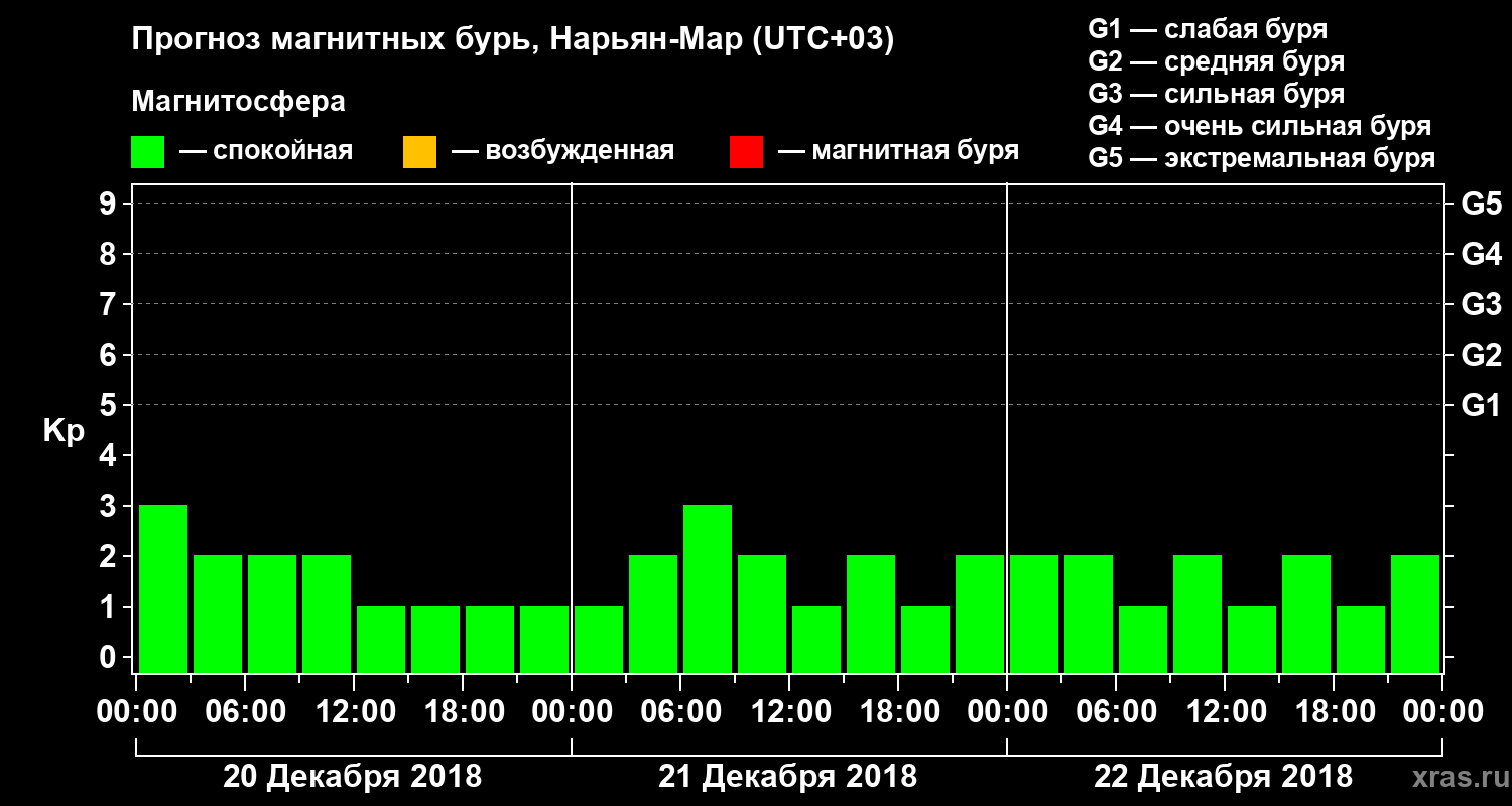 Прогноз магнитных бурь в Нарьян-Маре — 20 декабря 2018 года