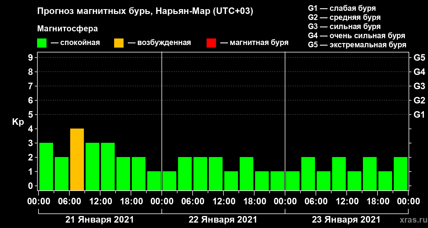 Прогноз магнитных бурь в Нарьян-Маре на 21 января 2021 года
