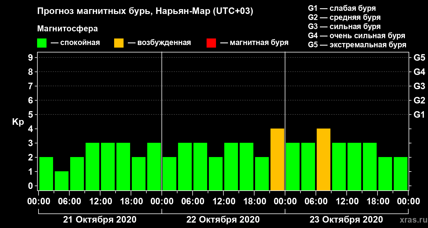 Прогноз магнитных бурь в Нарьян-Маре на 21 октября 2020 года