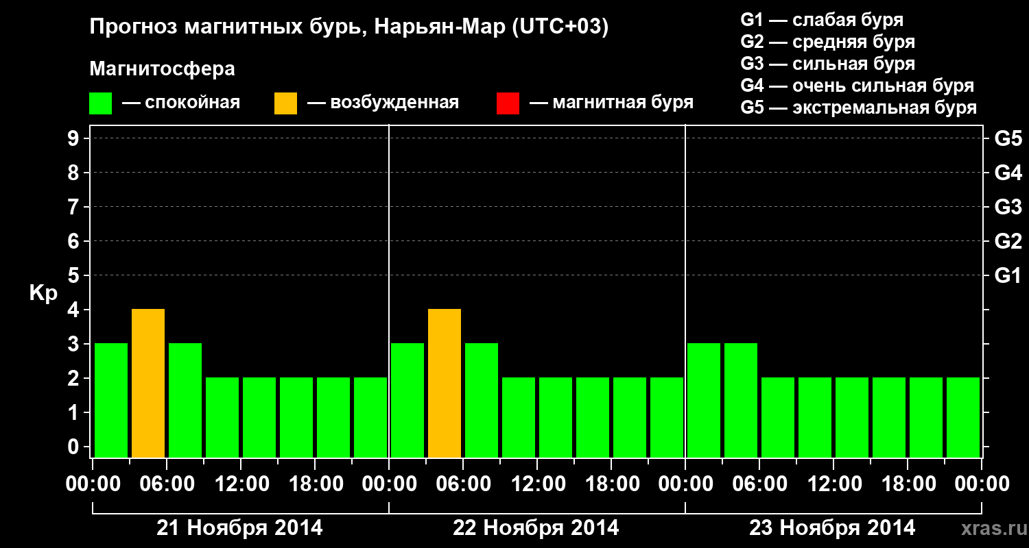 Прогноз магнитных бурь в Нарьян-Маре на 21 ноября 2014 года