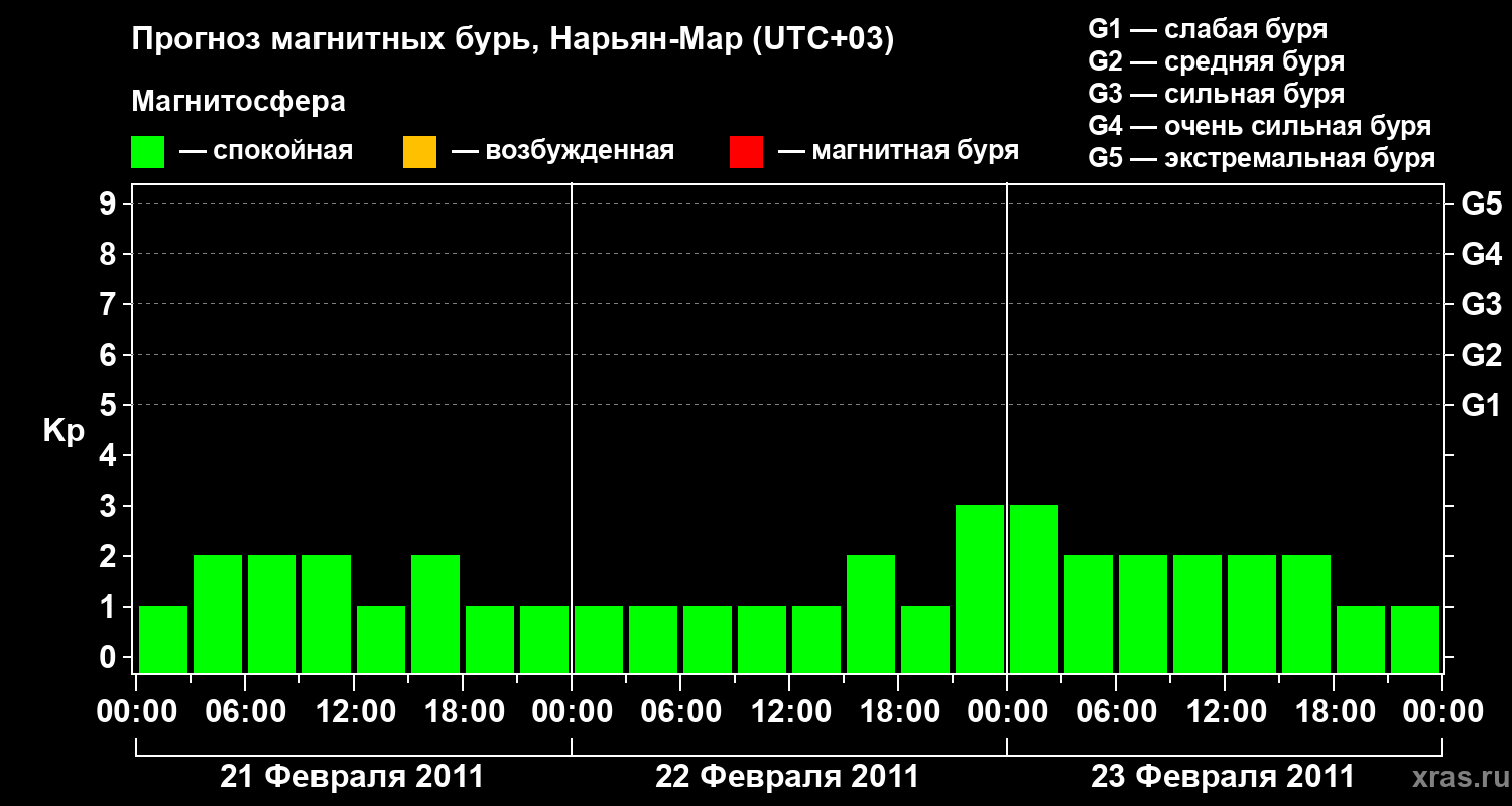 Прогноз магнитных бурь в Нарьян-Маре — 21 февраля 2011 года