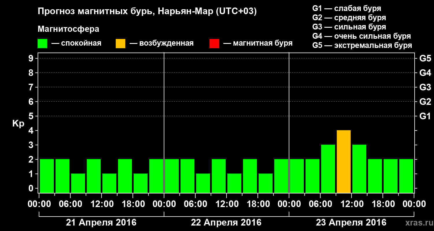 Прогноз магнитных бурь в Нарьян-Маре на 21 апреля 2016 года