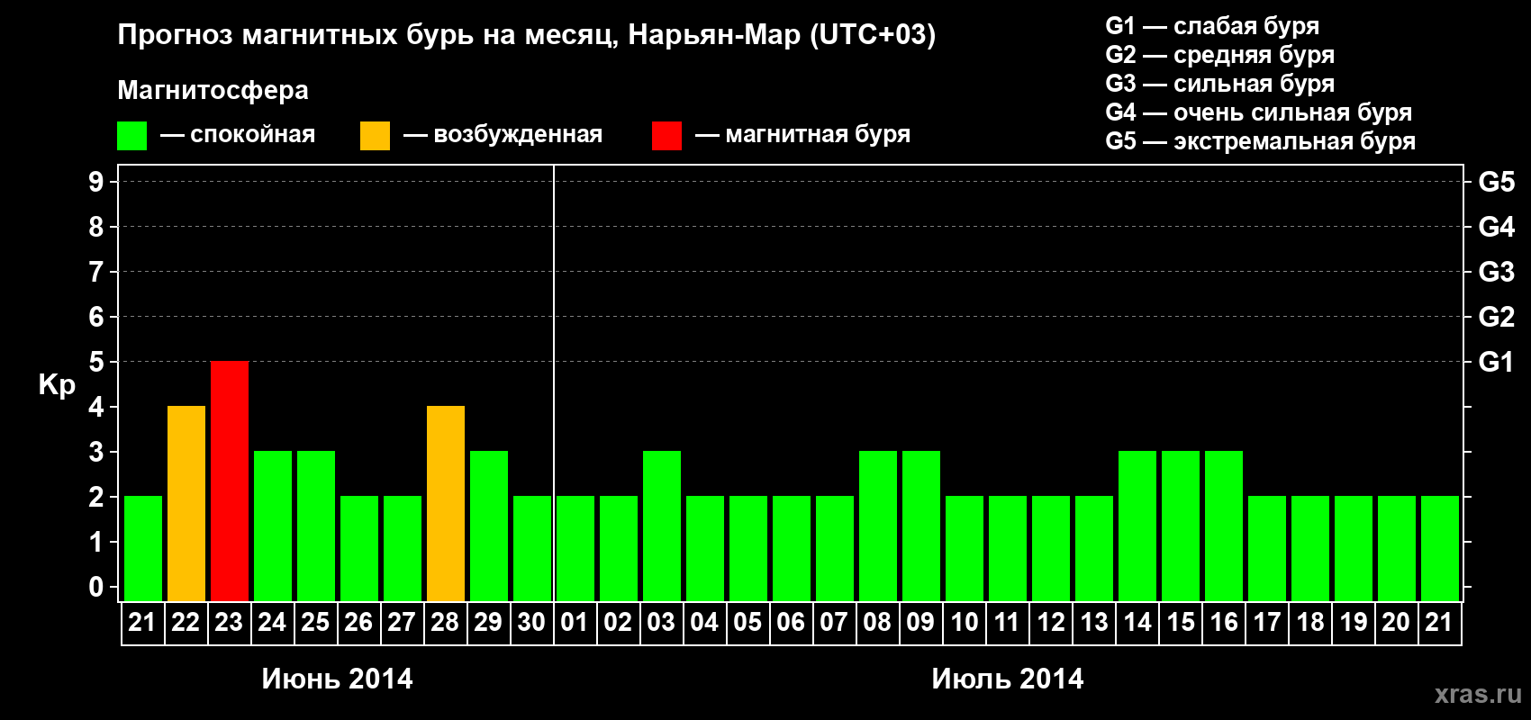 Прогноз магнитных бурь в Нарьян-Маре — 21 июня 2014 года