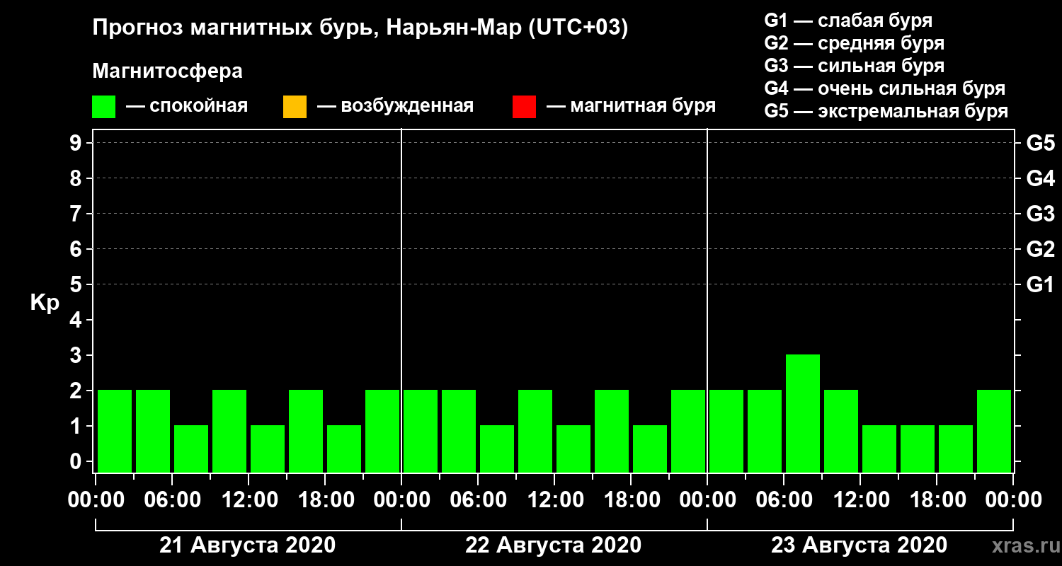 Прогноз магнитных бурь в Нарьян-Маре на 21 августа 2020 года