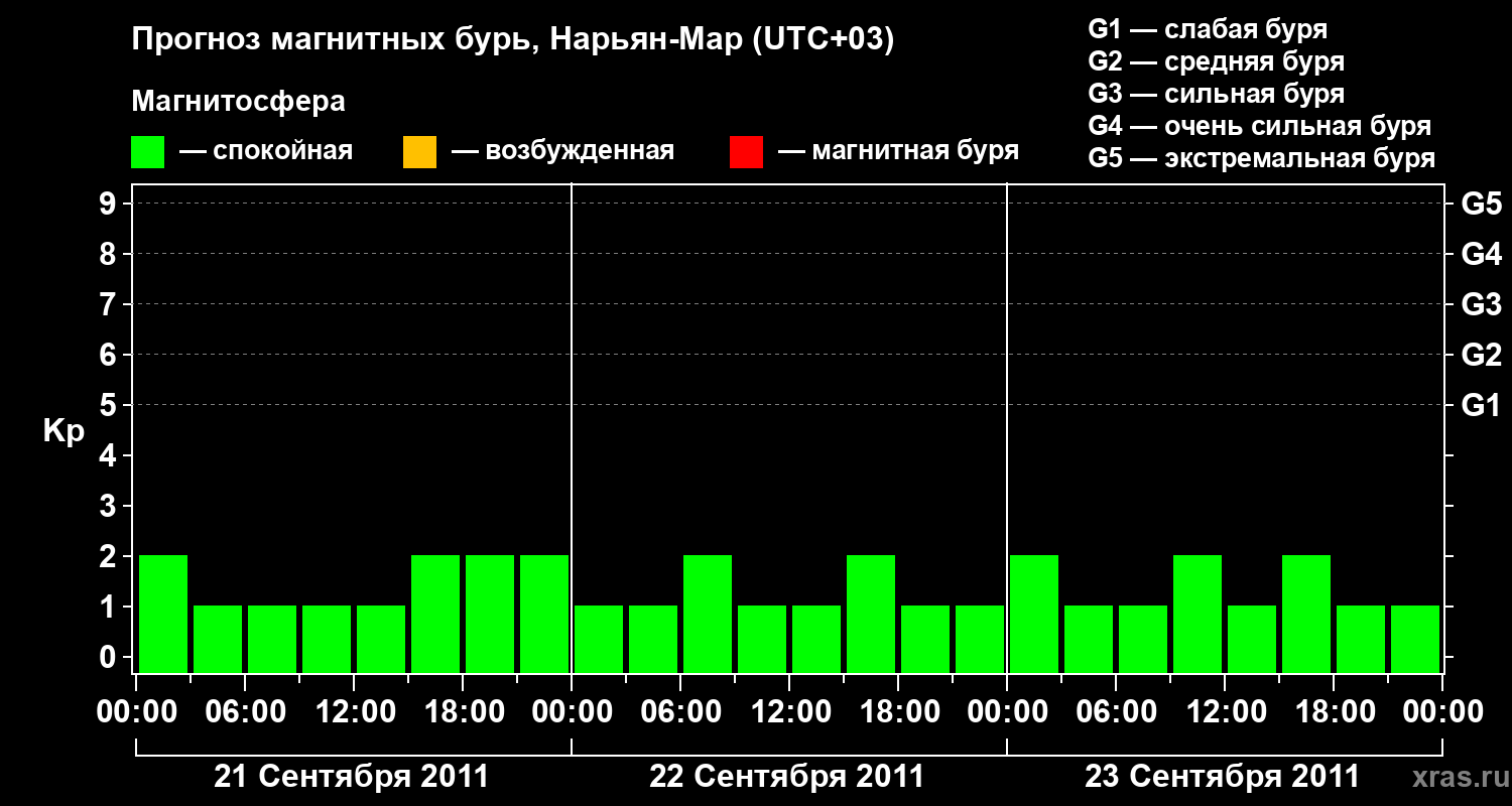 Прогноз магнитных бурь в Нарьян-Маре на 21 сентября 2011 года