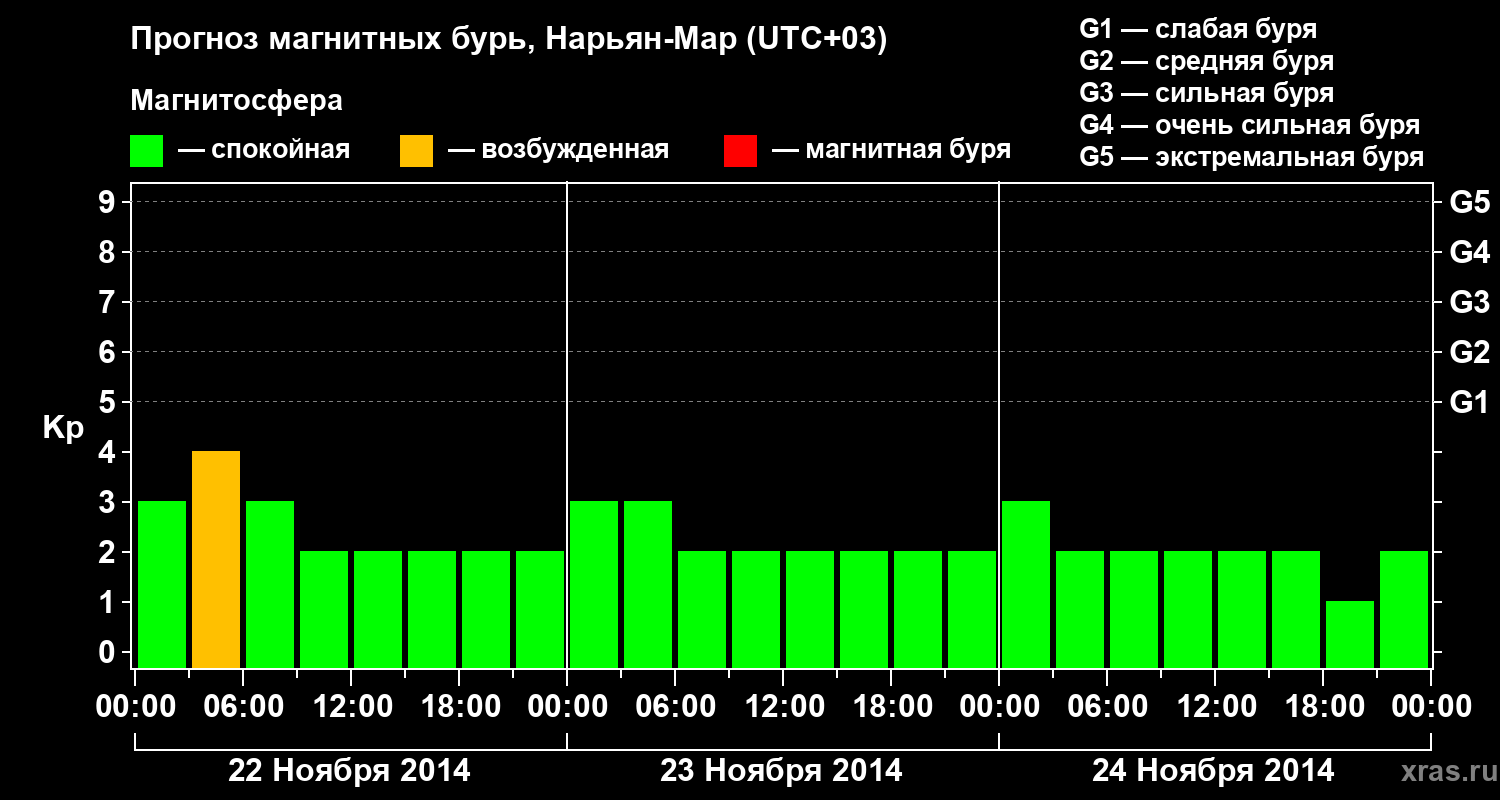 Прогноз магнитных бурь в Нарьян-Маре — 22 ноября 2014 года