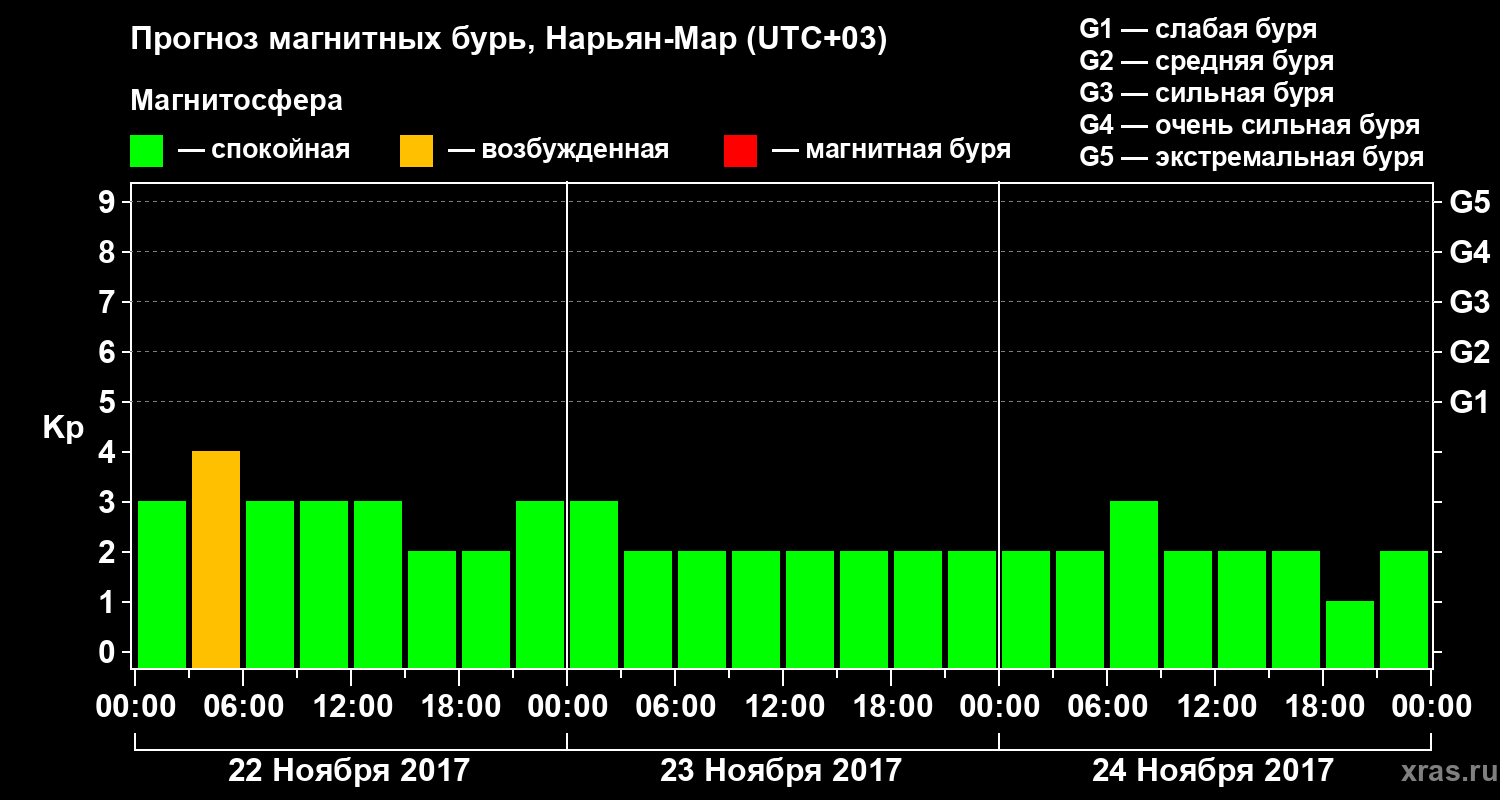 Прогноз магнитных бурь в Нарьян-Маре на 22 ноября 2017 года