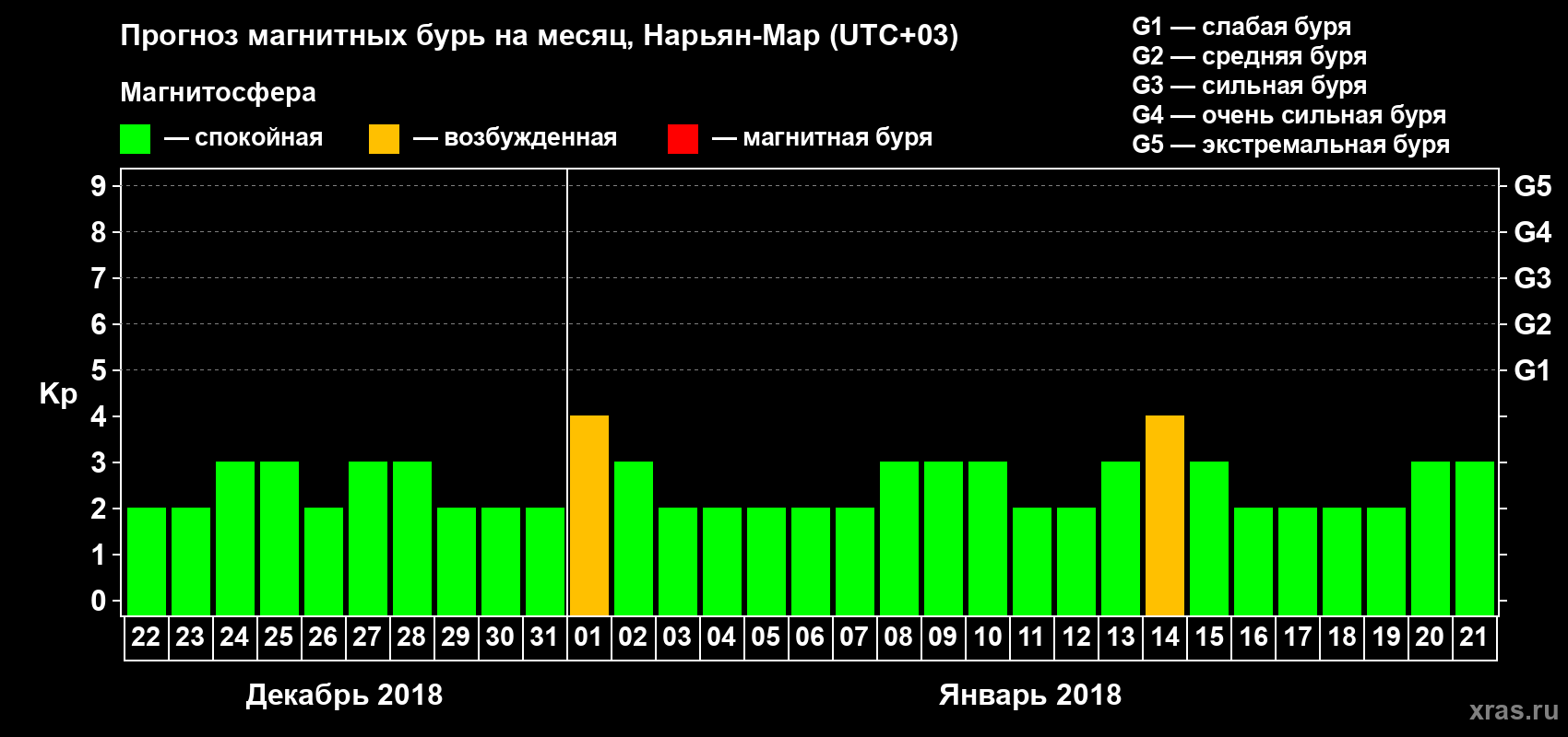 Прогноз магнитных бурь в Нарьян-Маре на 22 декабря 2017 года