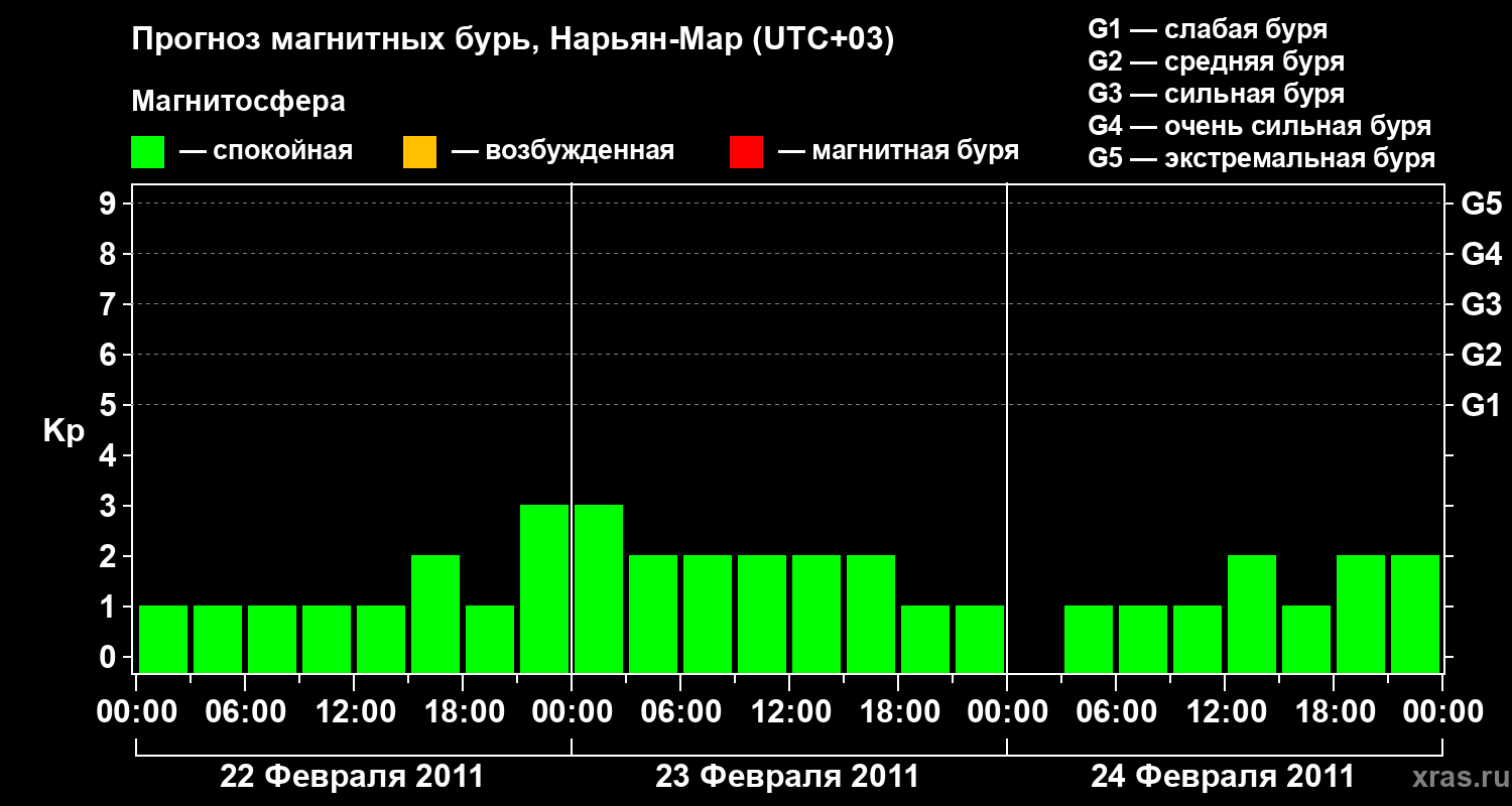 Прогноз магнитных бурь в Нарьян-Маре — 22 февраля 2011 года