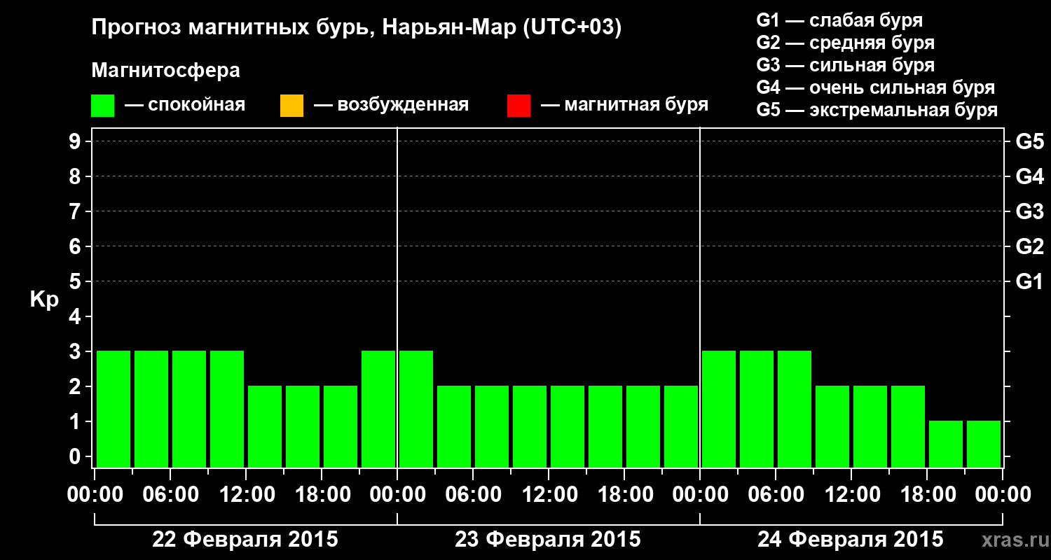Прогноз магнитных бурь в Нарьян-Маре на 22 февраля 2015 года
