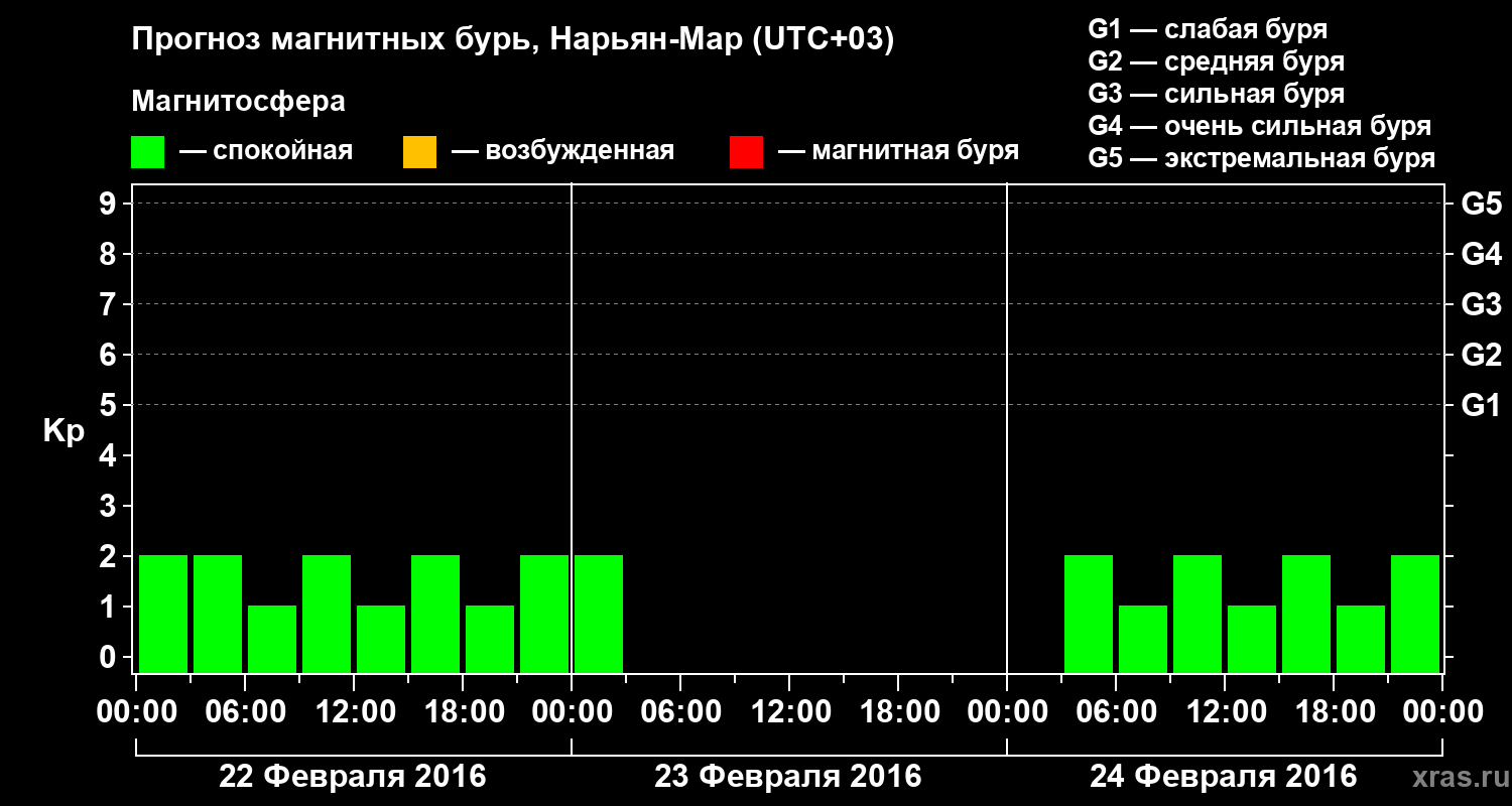 Прогноз магнитных бурь в Нарьян-Маре на 22 февраля 2016 года