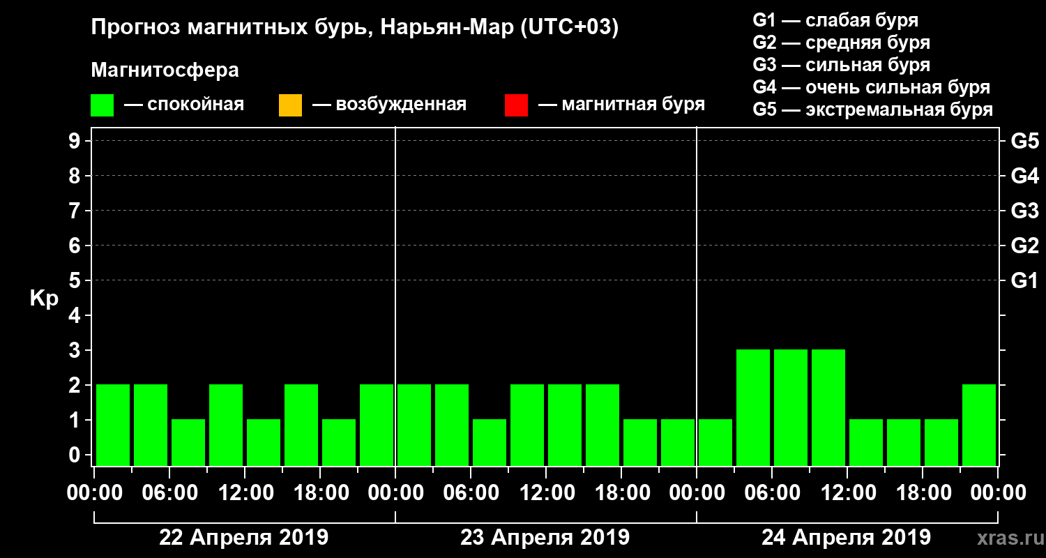 Прогноз магнитных бурь в Нарьян-Маре на 22 апреля 2019 года