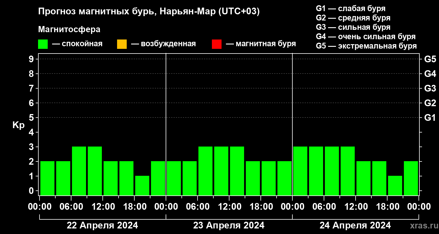 Прогноз магнитных бурь в Нарьян-Маре на 22 апреля 2024 года