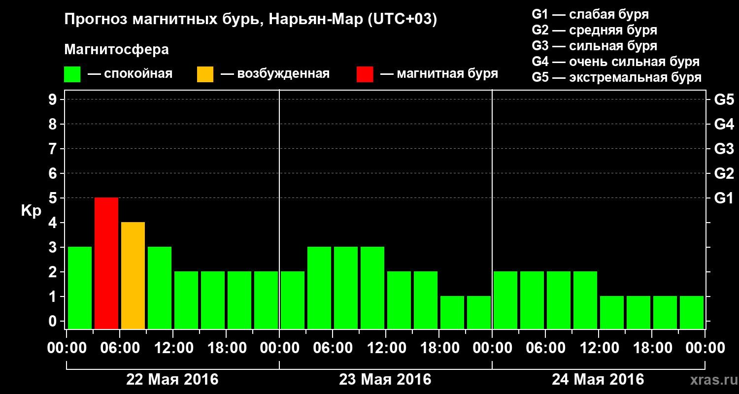 Прогноз магнитных бурь в Нарьян-Маре на 22 мая 2016 года