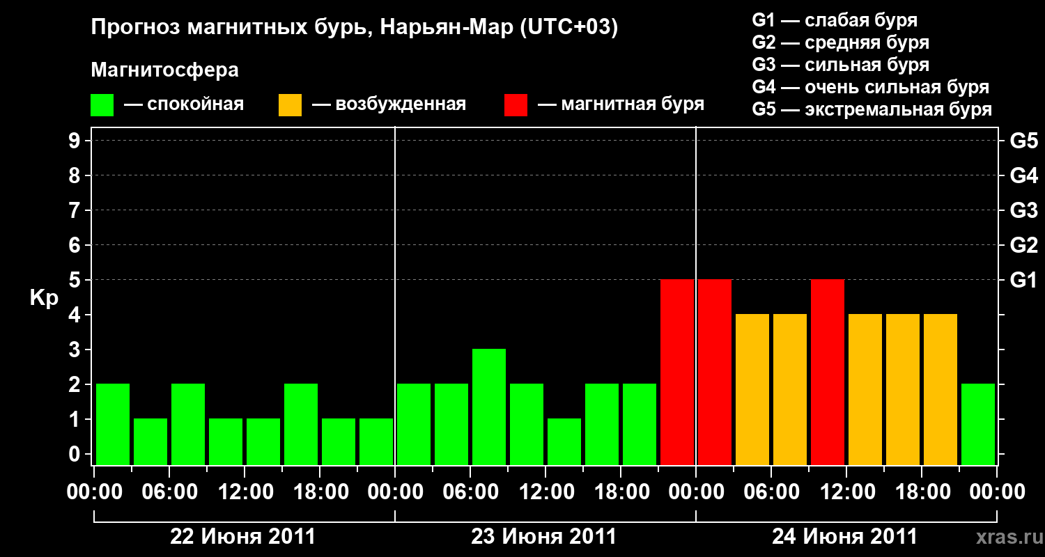 Прогноз магнитных бурь в Нарьян-Маре — 22 июня 2011 года