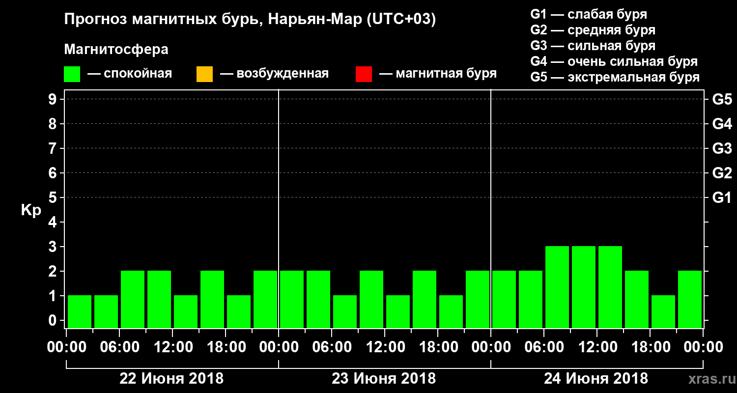 Прогноз магнитных бурь в Нарьян-Маре на 22 июня 2018 года