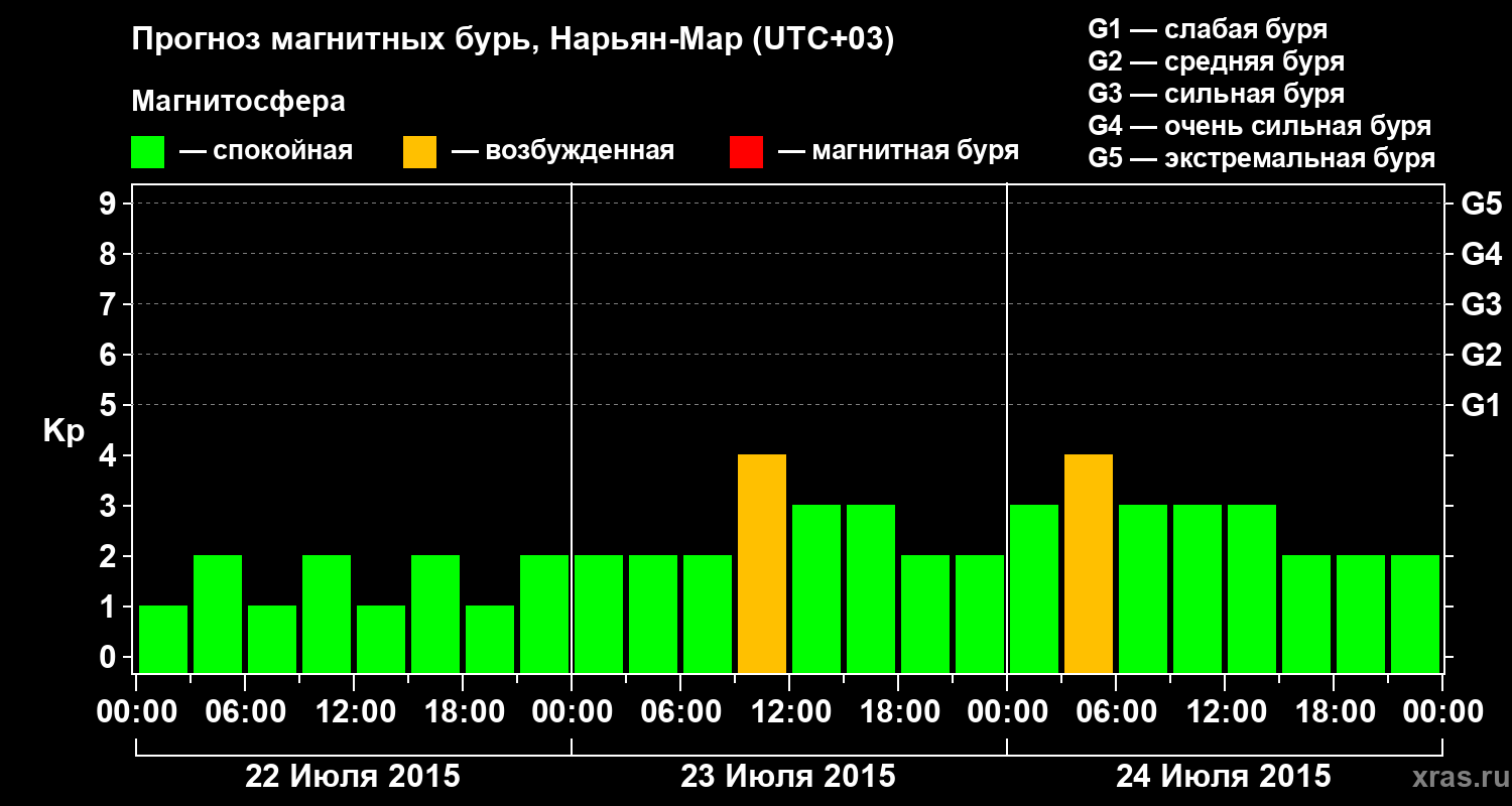 Прогноз магнитных бурь в Нарьян-Маре на 22 июля 2015 года