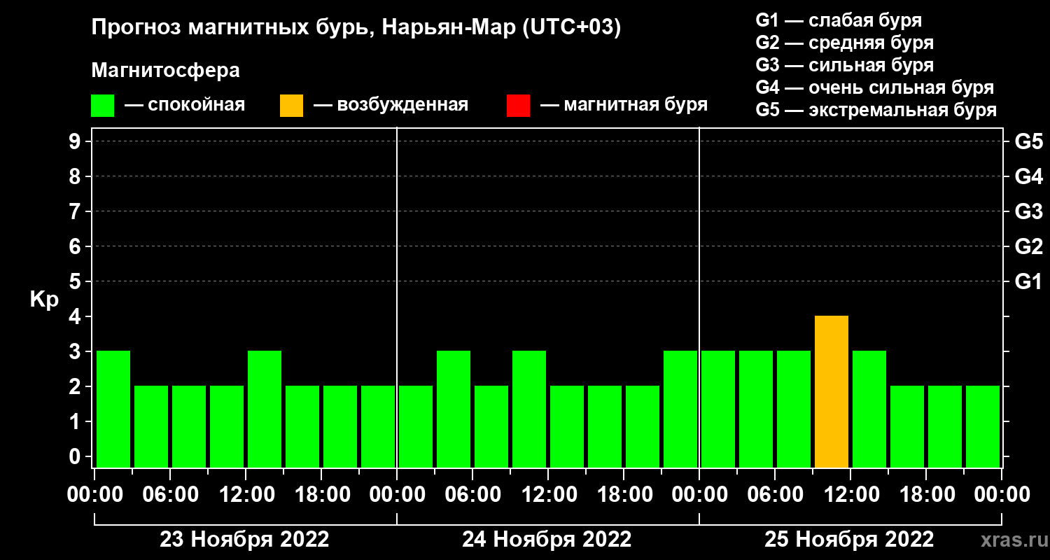 Прогноз магнитных бурь в Нарьян-Маре на 23 ноября 2022 года