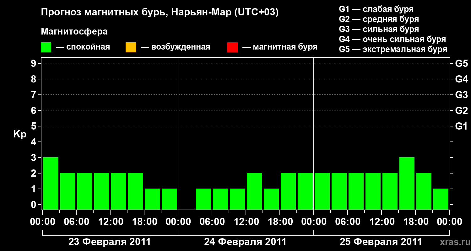 Прогноз магнитных бурь в Нарьян-Маре — 23 февраля 2011 года