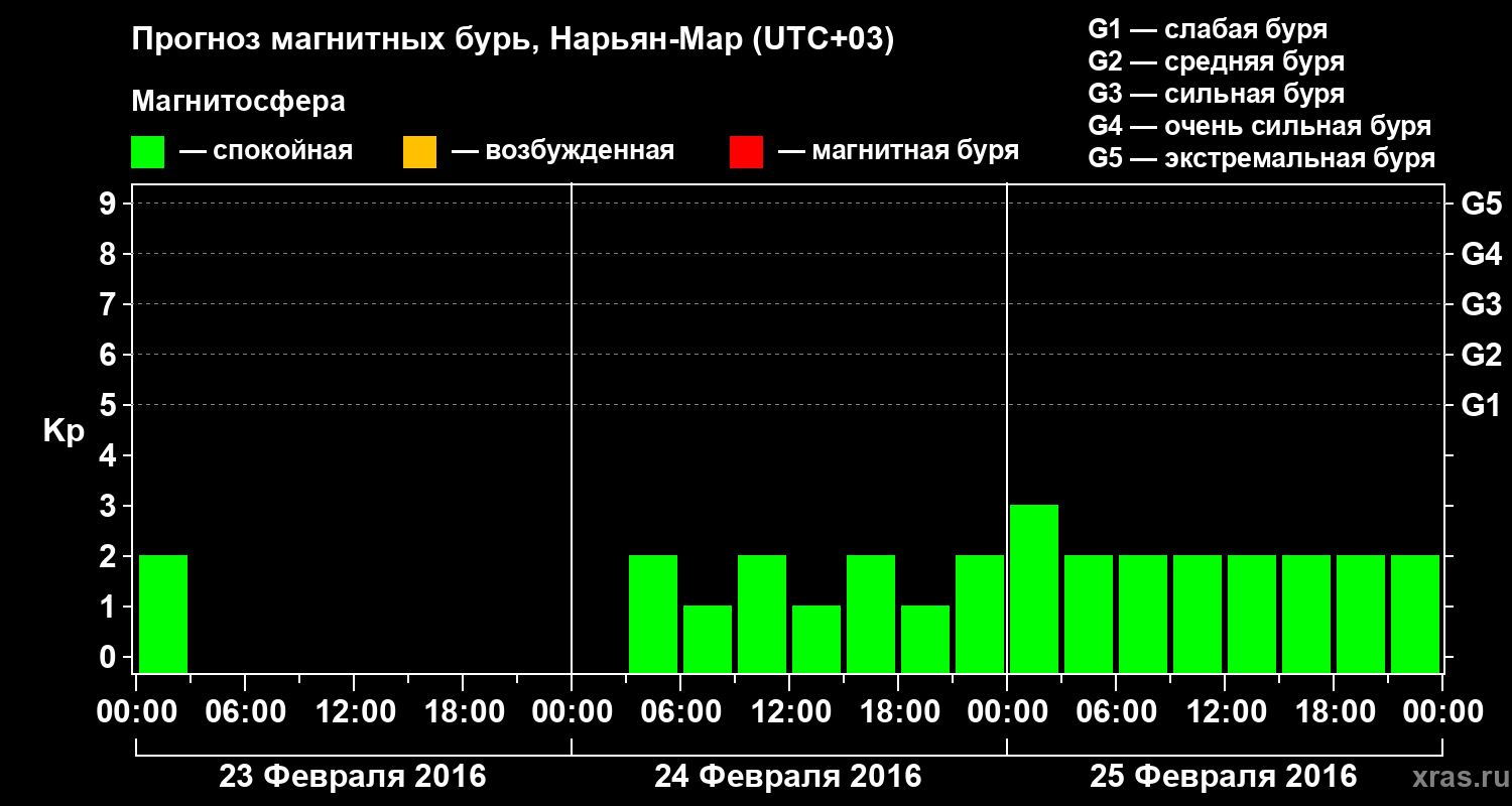 Прогноз магнитных бурь в Нарьян-Маре на 23 февраля 2016 года
