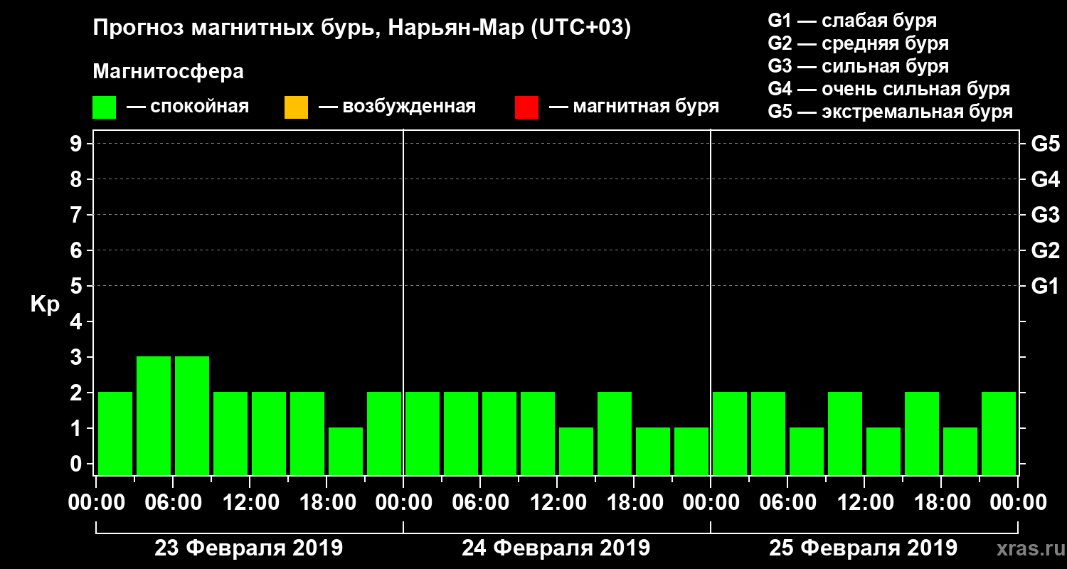 Прогноз магнитных бурь в Нарьян-Маре на 23 февраля 2019 года