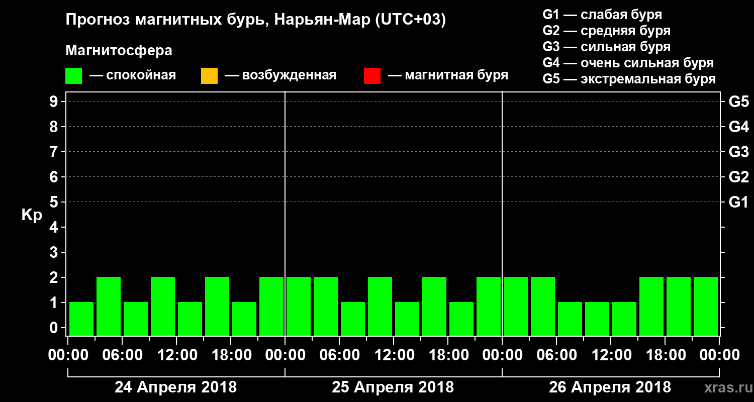 Прогноз магнитных бурь в Нарьян-Маре на 24 апреля 2018 года