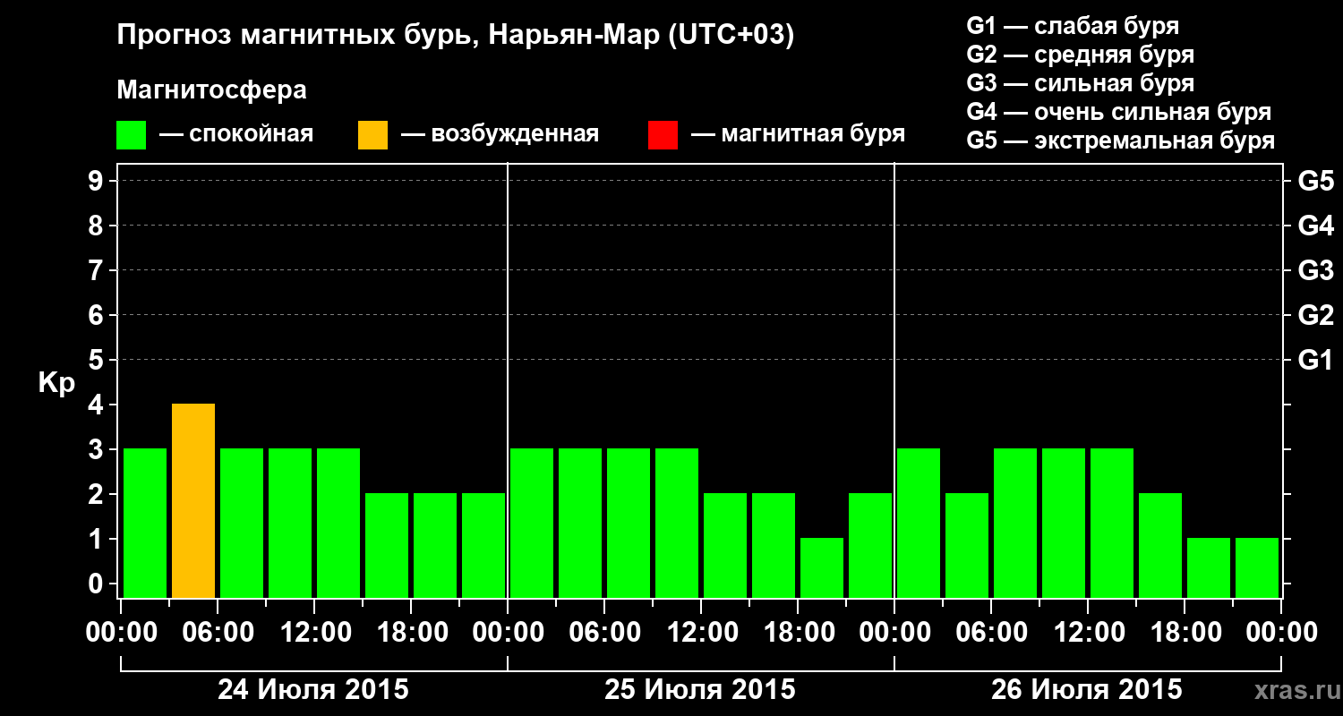 Прогноз магнитных бурь в Нарьян-Маре на 24 июля 2015 года