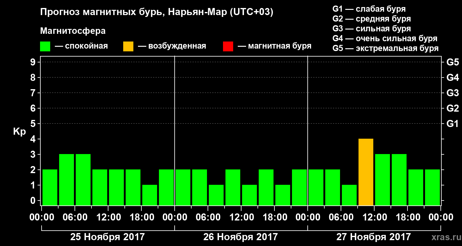Прогноз магнитных бурь в Нарьян-Маре на 25 ноября 2017 года