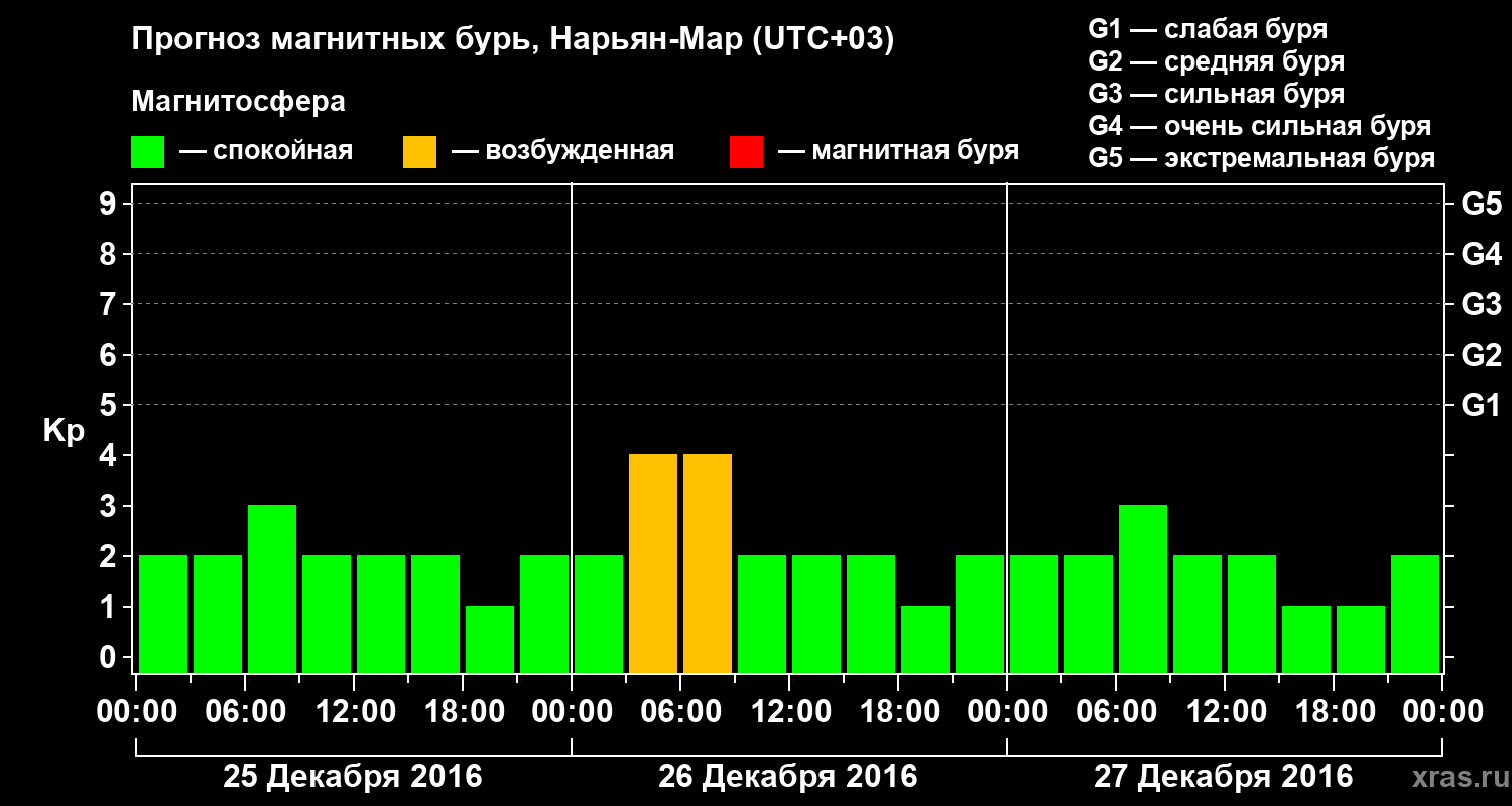 Прогноз магнитных бурь в Нарьян-Маре на 25 декабря 2016 года