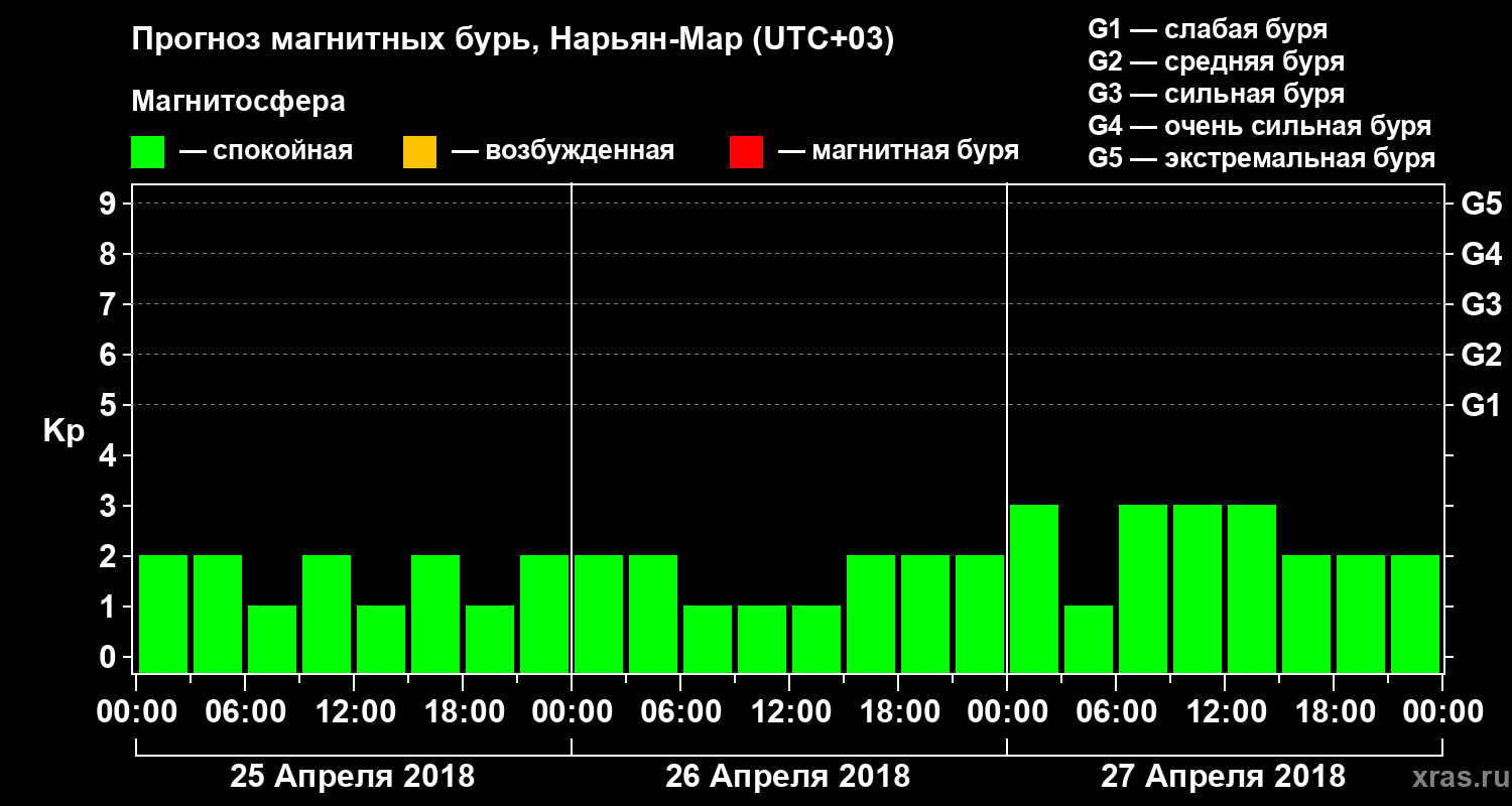 Прогноз магнитных бурь в Нарьян-Маре на 25 апреля 2018 года