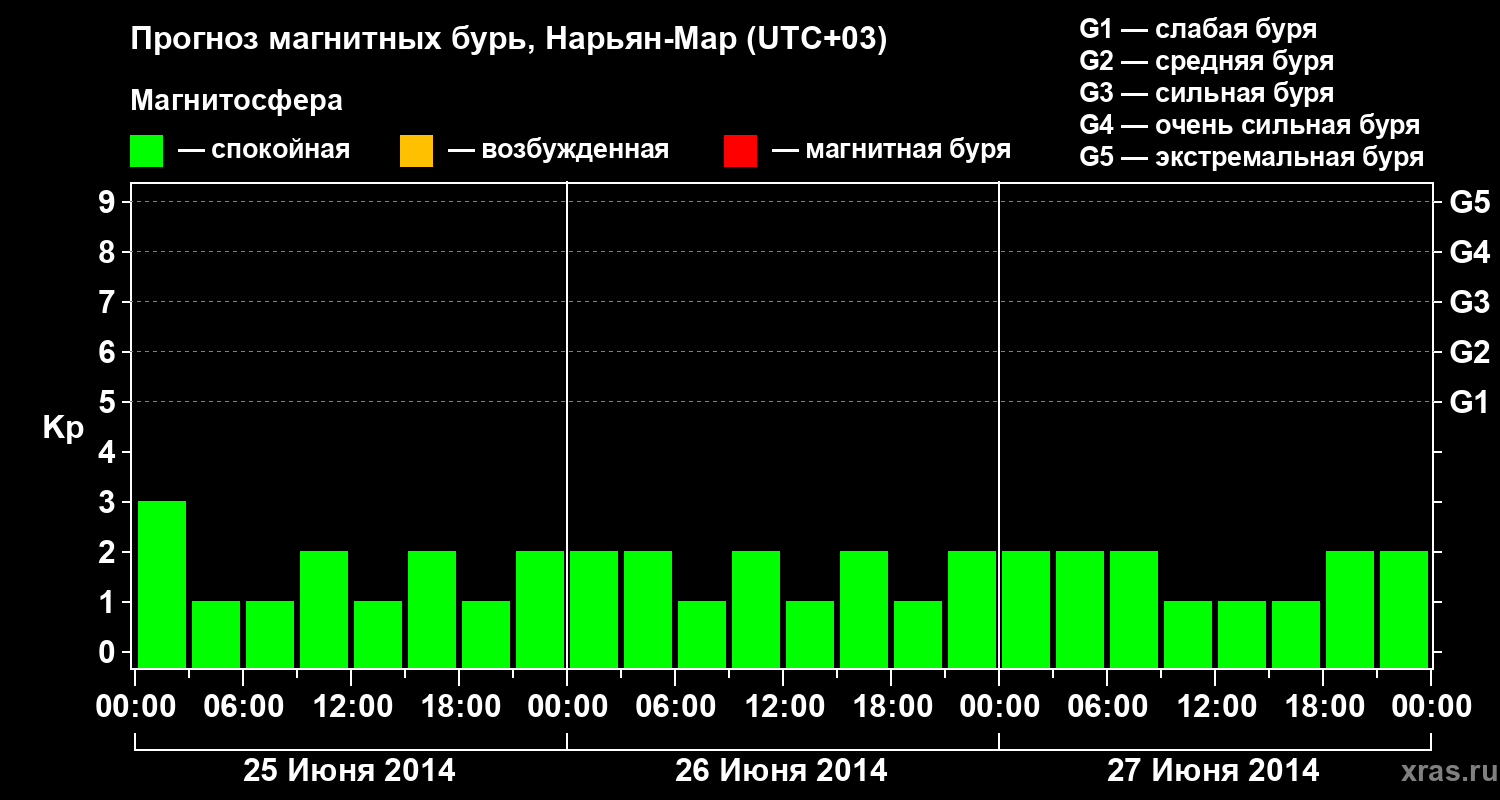 Прогноз магнитных бурь в Нарьян-Маре на 25 июня 2014 года