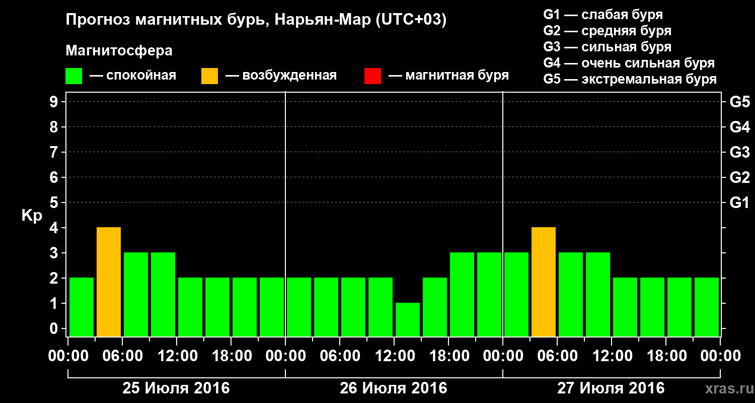 Прогноз магнитных бурь в Нарьян-Маре — 25 июля 2016 года