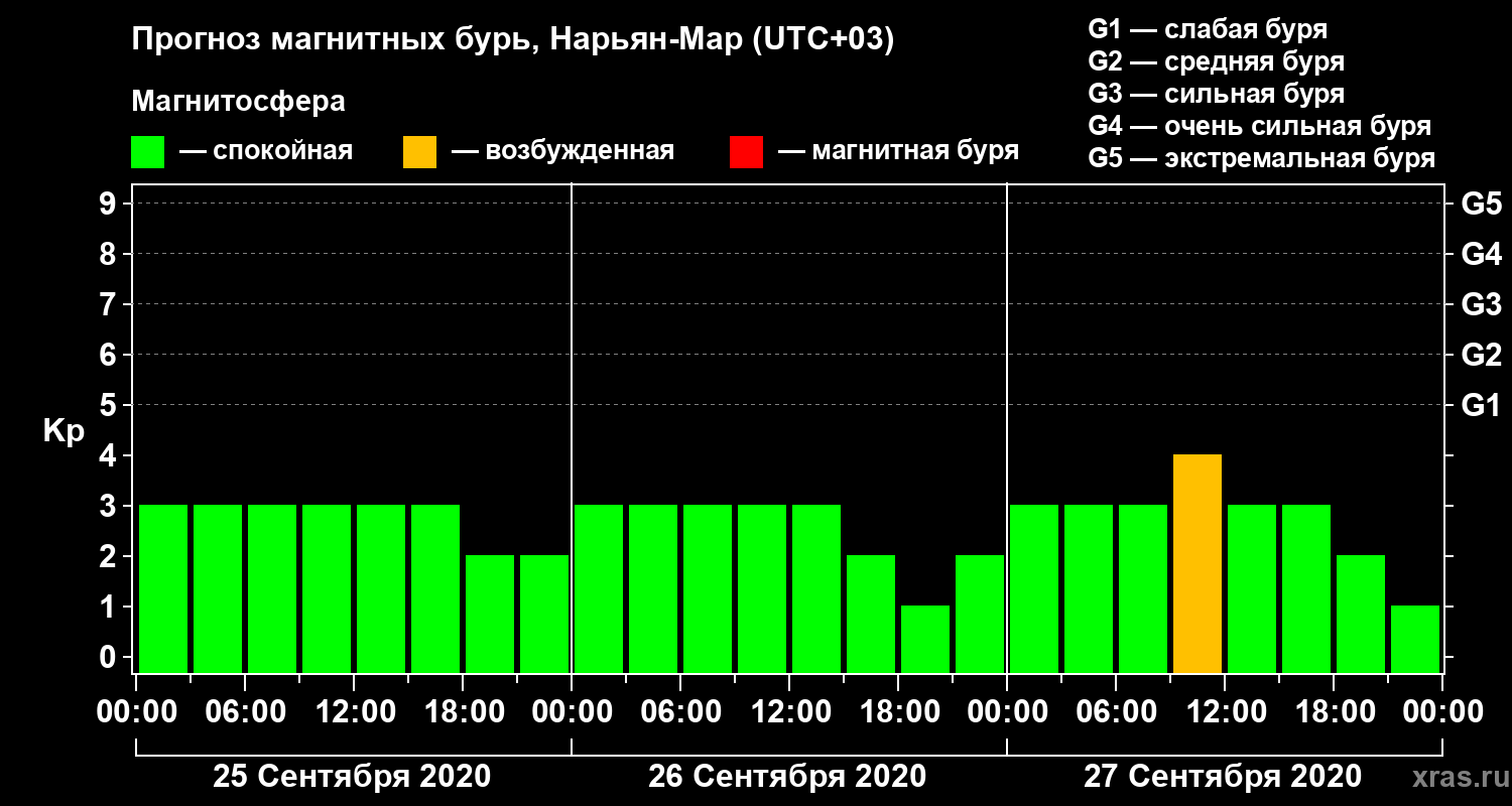 Прогноз магнитных бурь в Нарьян-Маре на 25 сентября 2020 года