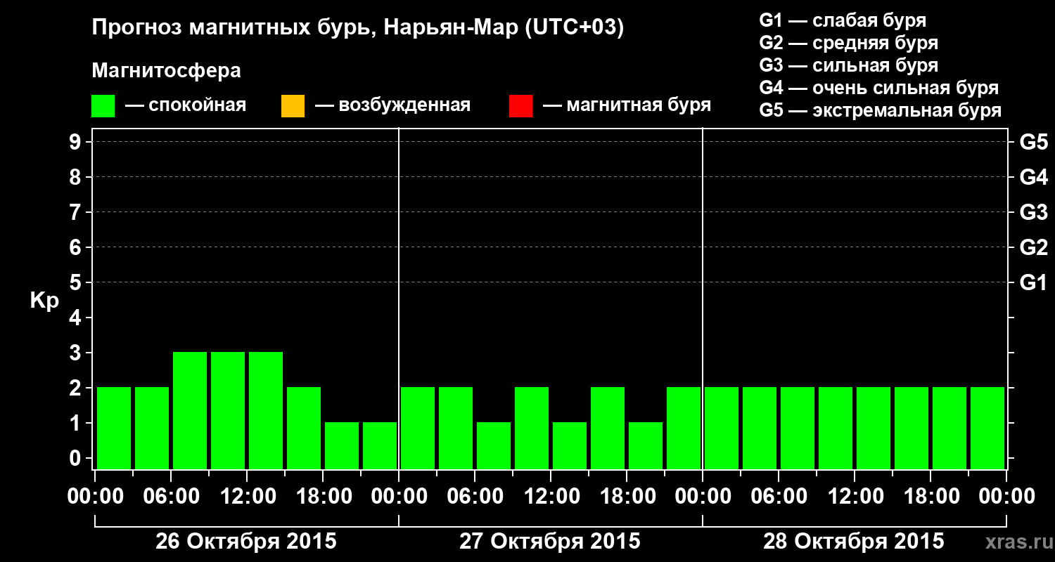 Прогноз магнитных бурь в Нарьян-Маре — 26 октября 2015 года