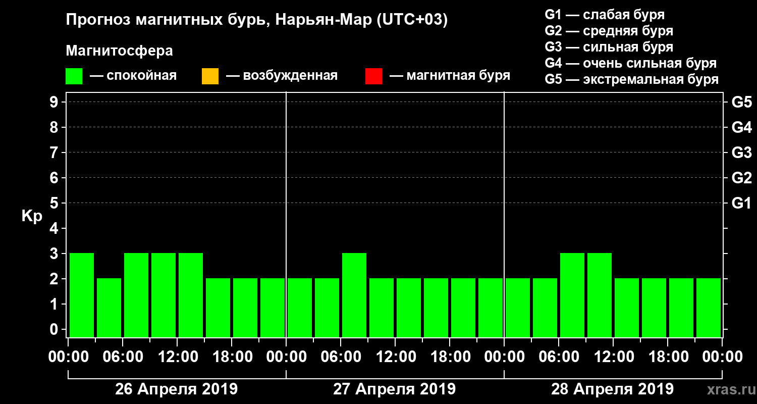Прогноз магнитных бурь в Нарьян-Маре на 26 апреля 2019 года