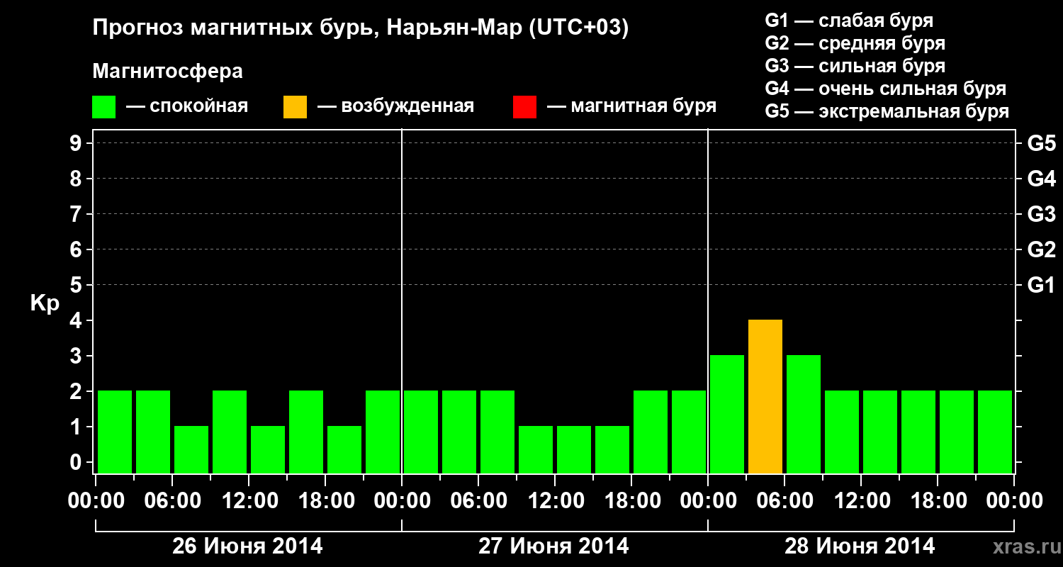 Прогноз магнитных бурь в Нарьян-Маре на 26 июня 2014 года