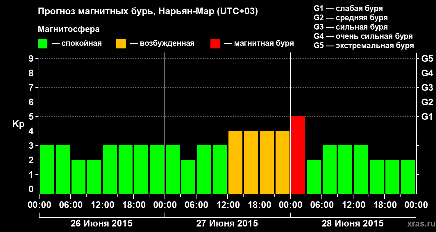 Прогноз магнитных бурь в Нарьян-Маре на 26 июня 2015 года