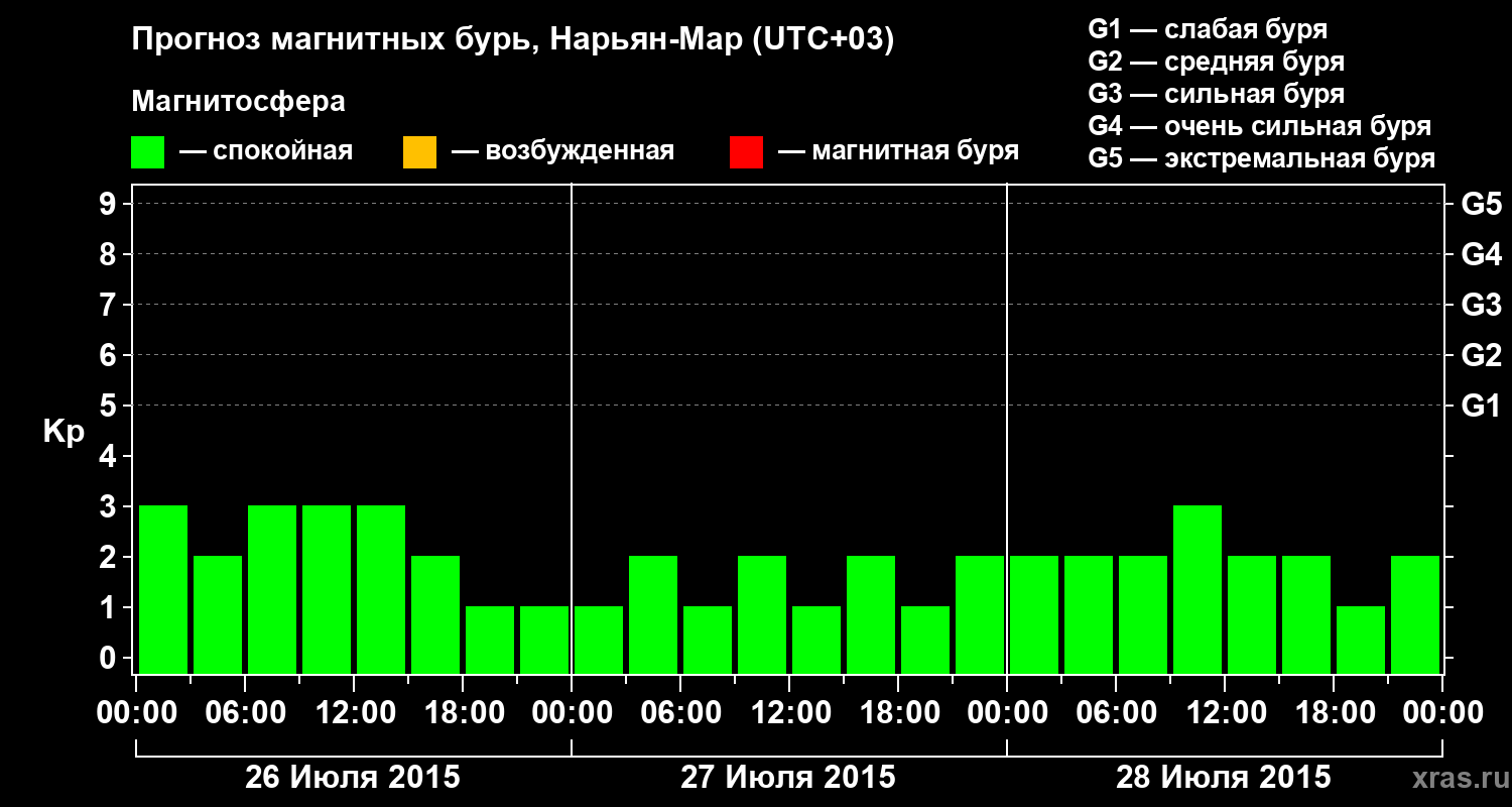 Прогноз магнитных бурь в Нарьян-Маре на 26 июля 2015 года