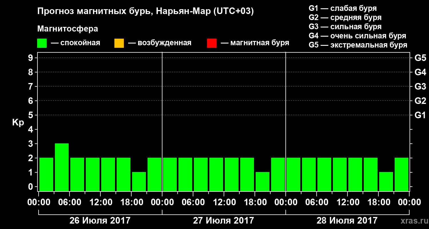 Прогноз магнитных бурь в Нарьян-Маре на 26 июля 2017 года