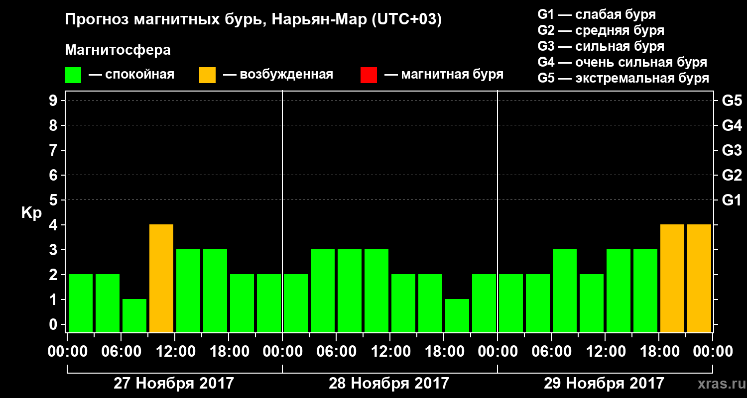 Прогноз магнитных бурь в Нарьян-Маре — 27 ноября 2017 года