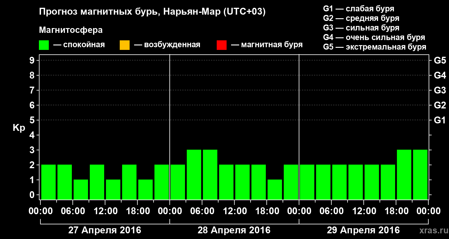 Прогноз магнитных бурь в Нарьян-Маре на 27 апреля 2016 года