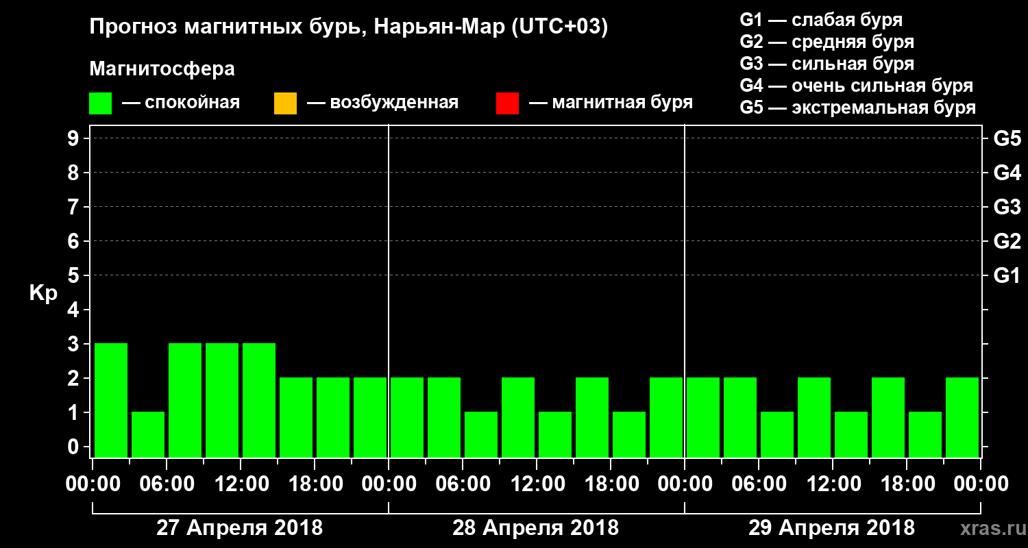 Прогноз магнитных бурь в Нарьян-Маре на 27 апреля 2018 года