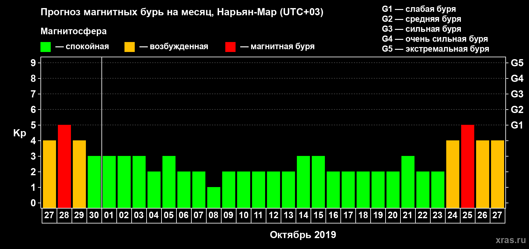 Прогноз магнитных бурь в Нарьян-Маре на 27 сентября 2019 года