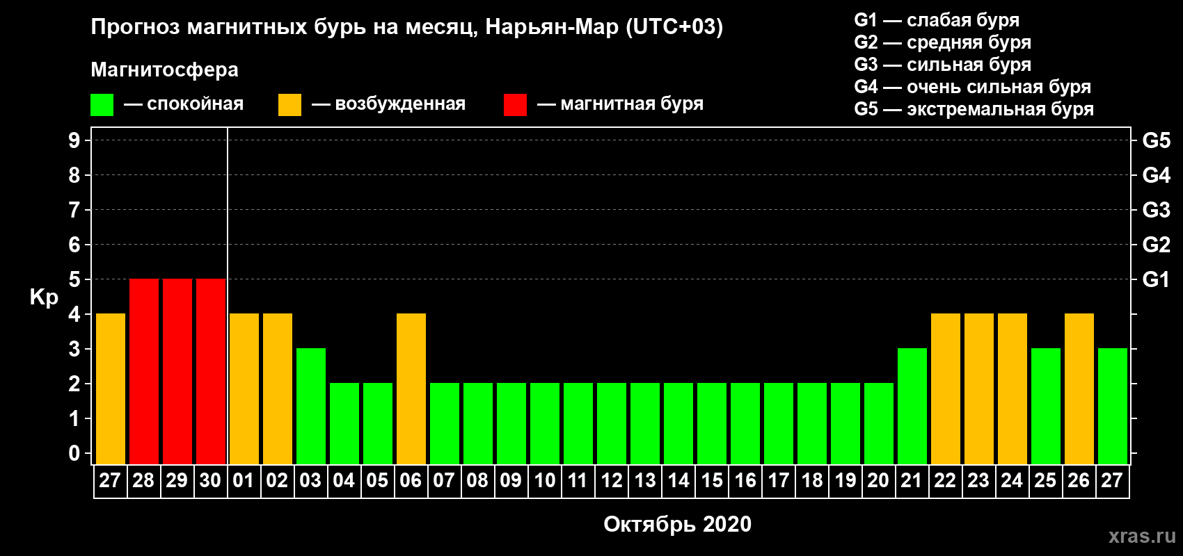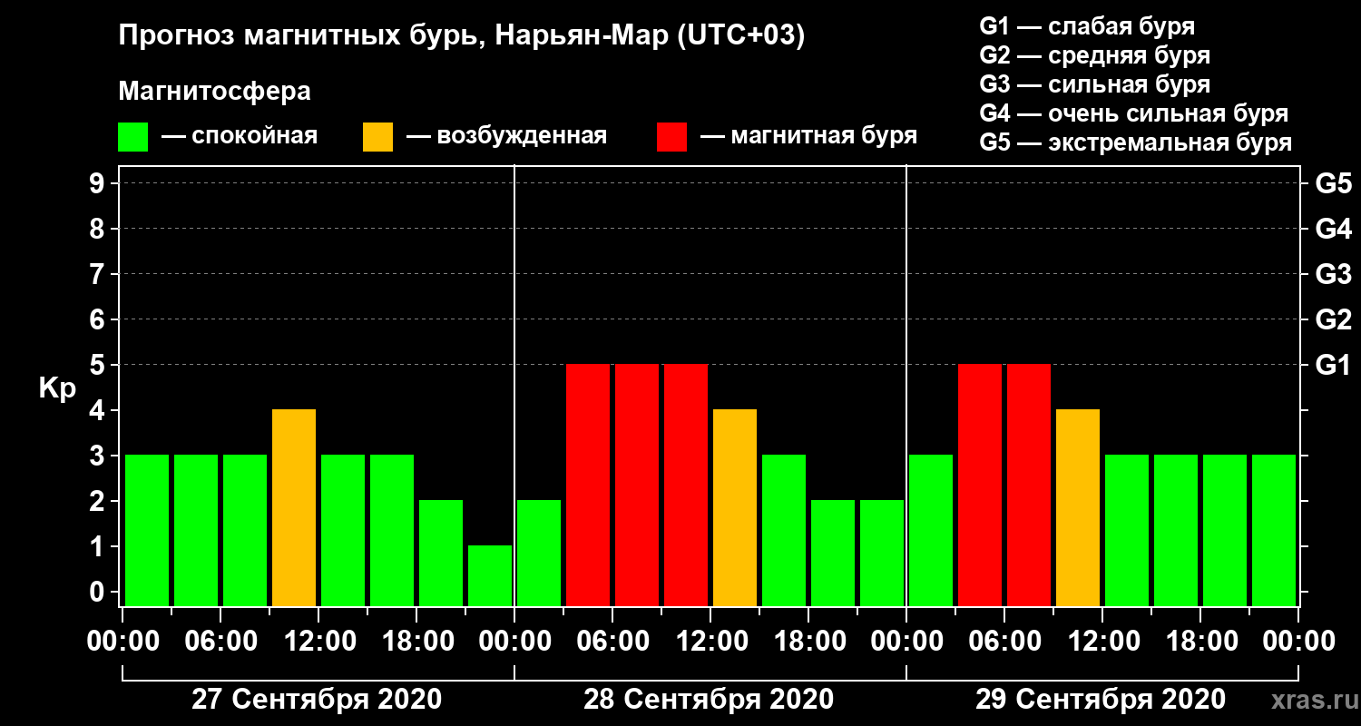 Прогноз магнитных бурь в Нарьян-Маре на 27 сентября 2020 года