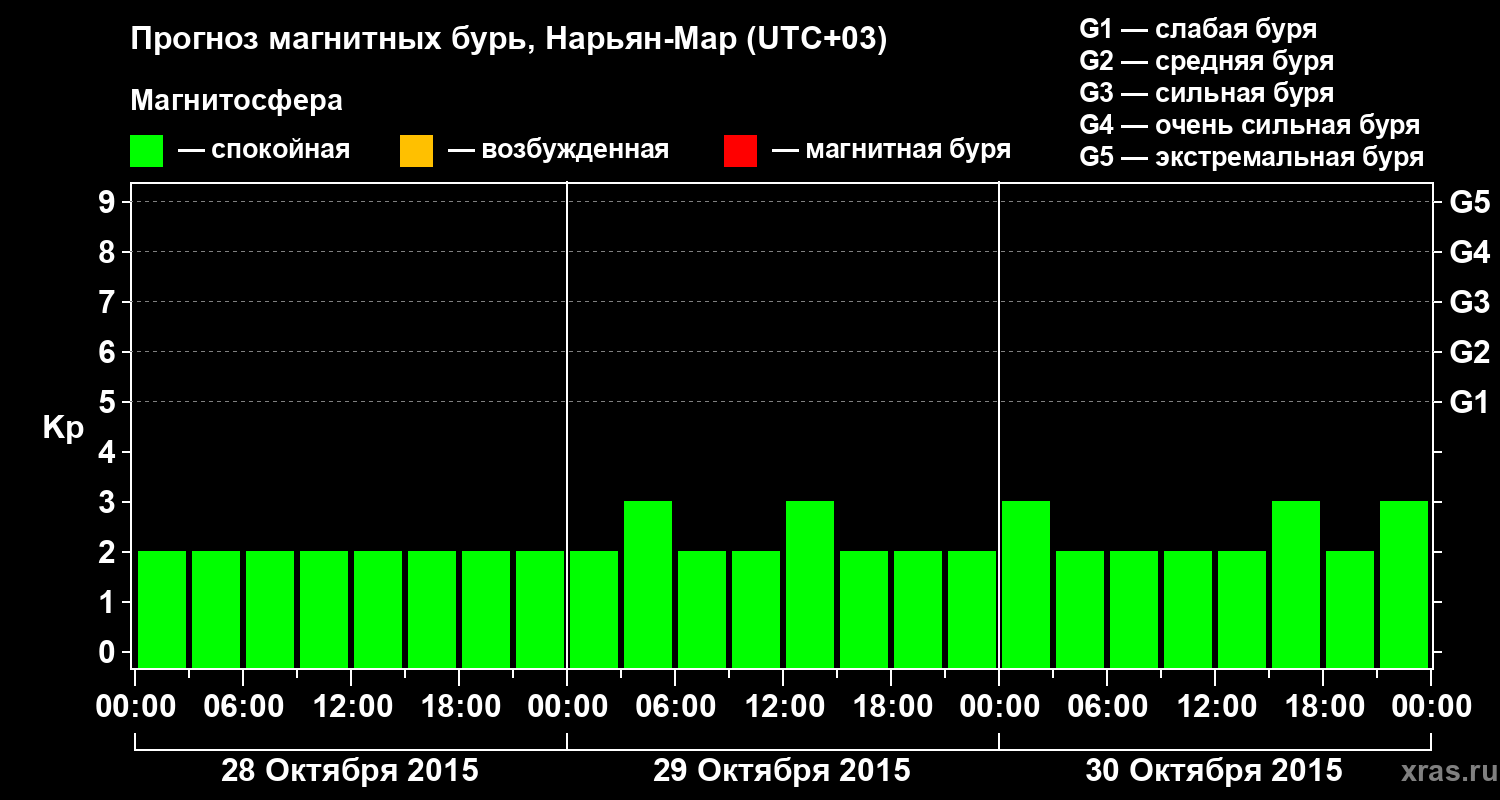 Прогноз магнитных бурь в Нарьян-Маре на 28 октября 2015 года