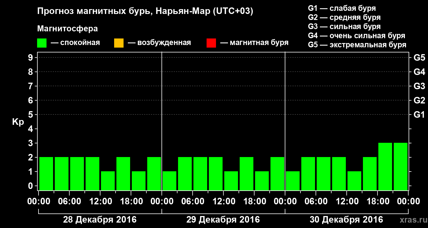 Прогноз магнитных бурь в Нарьян-Маре на 28 декабря 2016 года